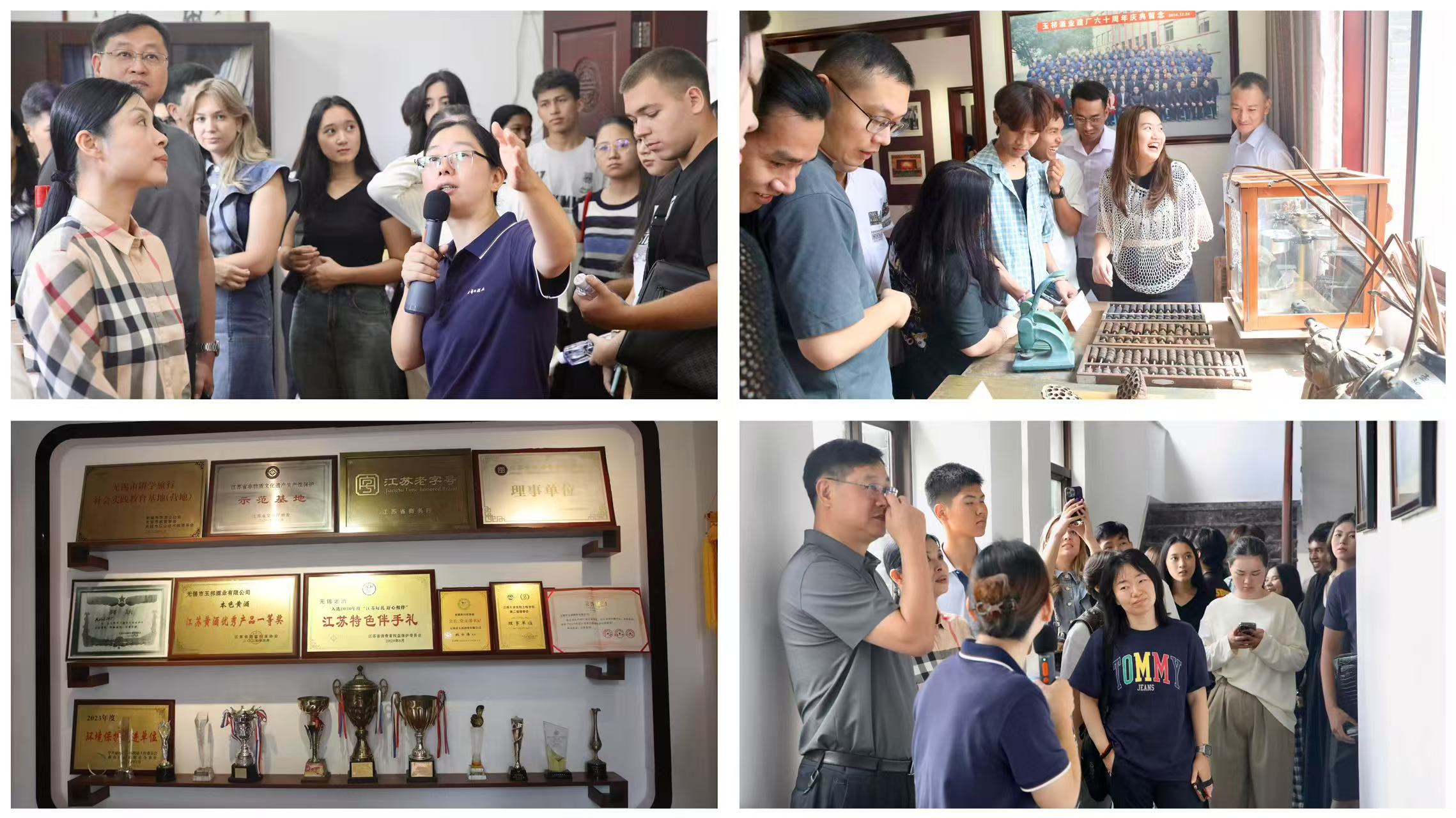 中秋將至,月色漸濃。為讓 “一帶一路” 國家在錫留學(xué)生感受中國傳統(tǒng)節(jié)日氛圍與江南文化魅力,一場 “迎中秋・看惠山” 主題活動溫情開啟。近日,留學(xué)生們走進(jìn)無錫玉祁酒業(yè),在酒香氤氳中,開啟了一場沉浸式的江南酒文化探索之旅。 剛踏入雙套老酒技藝展覽館,留學(xué)生們就被眼前的 “老物件” 吸引。古樸的木榨靜靜佇立,斑駁的酒壇、舊時的蒸酒器具整齊陳列,仿佛在訴說著百年釀酒故事。“這些器具是如何用來釀酒的?”“雙套酒的‘雙套’有什么特別含義?” 面對留學(xué)生們的好奇提問,講解員耐心解答,從糧食甄選、酒曲制作,到發(fā)酵、蒸餾的全流程,再到 “世代相傳、精益求精” 的釀造精神,生動的講解讓大家對中國傳統(tǒng)釀酒技藝有了更深刻的認(rèn)識。不少留學(xué)生拿出手機(jī),對著這些充滿歷史感的器具拍照,生怕錯過每一個細(xì)節(jié)。 走進(jìn)企業(yè)展覽館,另一番景象讓留學(xué)生們眼前一亮。玻璃展柜里,封存完好的舊時老酒散發(fā)著歲月的醇香,旁邊泛黃的賬本記錄著往昔的經(jīng)營故事;活字印刷模具、老式算盤等 “老工具” 整齊擺放,勾起了大家對傳統(tǒng)商業(yè)文化的好奇,紛紛駐足觀察,不時互相交流心得。 再往里走,墻上掛滿的榮譽(yù)獎牌、證書格外醒目 —— 從行業(yè)認(rèn)證到地方嘉獎,每一份榮譽(yù)背后,都是玉祁酒業(yè)一代代人堅守與努力的見證。而展區(qū)內(nèi)陳列的精美定制瓶身,更是讓留學(xué)生們眼前一亮:有的融入江南園林元素,有的印有傳統(tǒng)吉祥圖案,獨(dú)特的設(shè)計風(fēng)格引得大家紛紛拿起瓶身仔細(xì)端詳,拍照留念,感受中國傳統(tǒng)美學(xué)與酒文化的完美融合。 活動的最后一站,來到了江南醬酒酒體設(shè)計品鑒中心。大家先共同觀看了江南醬酒的宣傳片,從水源、原料到釀造工藝,全方位了解了這款酒的 “誕生故事”。隨后,在工作人員的指導(dǎo)下,留學(xué)生們拿起酒杯,輕嗅酒香,慢品佳釀,感受江南醬酒醇厚綿柔的獨(dú)特口感。 "The first time I've ever tasted it, it's incredibly unique!" (第一次喝到這樣的中國白酒,味道很特別!)"I never knew there were so many intricacies in winemaking. Chinese culture is truly fascinating!" (原來釀酒有這么多講究,中國文化太有意思了!)留學(xué)生們一邊品嘗,一邊分享著自己的感受,還不忘拿起手機(jī)合影,將這份獨(dú)特的體驗和愉快的時光定格下來。 此次玉祁酒業(yè)之行,不僅讓 “一帶一路” 國家的留學(xué)生們近距離感受了中國傳統(tǒng)酒文化的魅力,更在中秋佳節(jié)來臨之際,讓他們感受到了 “他鄉(xiāng)亦故鄉(xiāng)” 的溫暖。未來,相信這樣的文化交流活動會越來越多,讓不同國家的朋友在互動中增進(jìn)了解,攜手共成長!